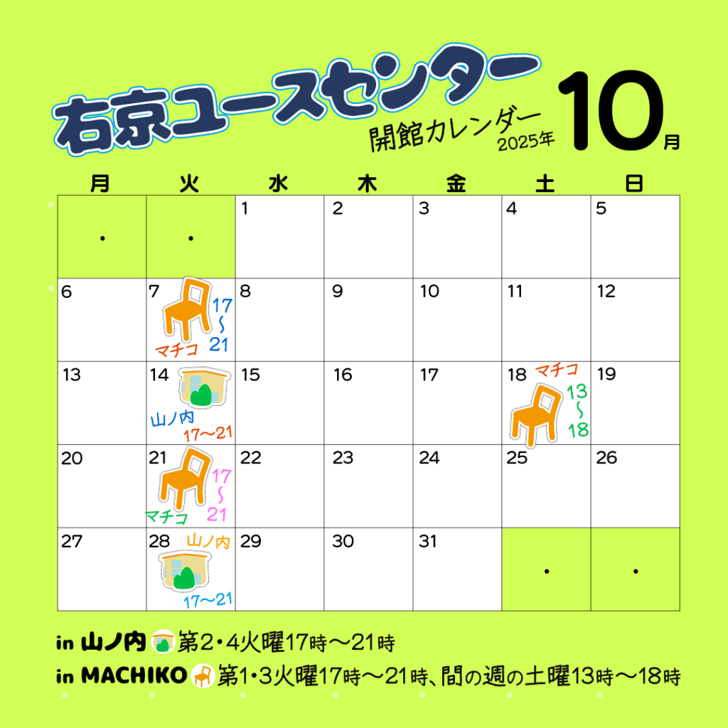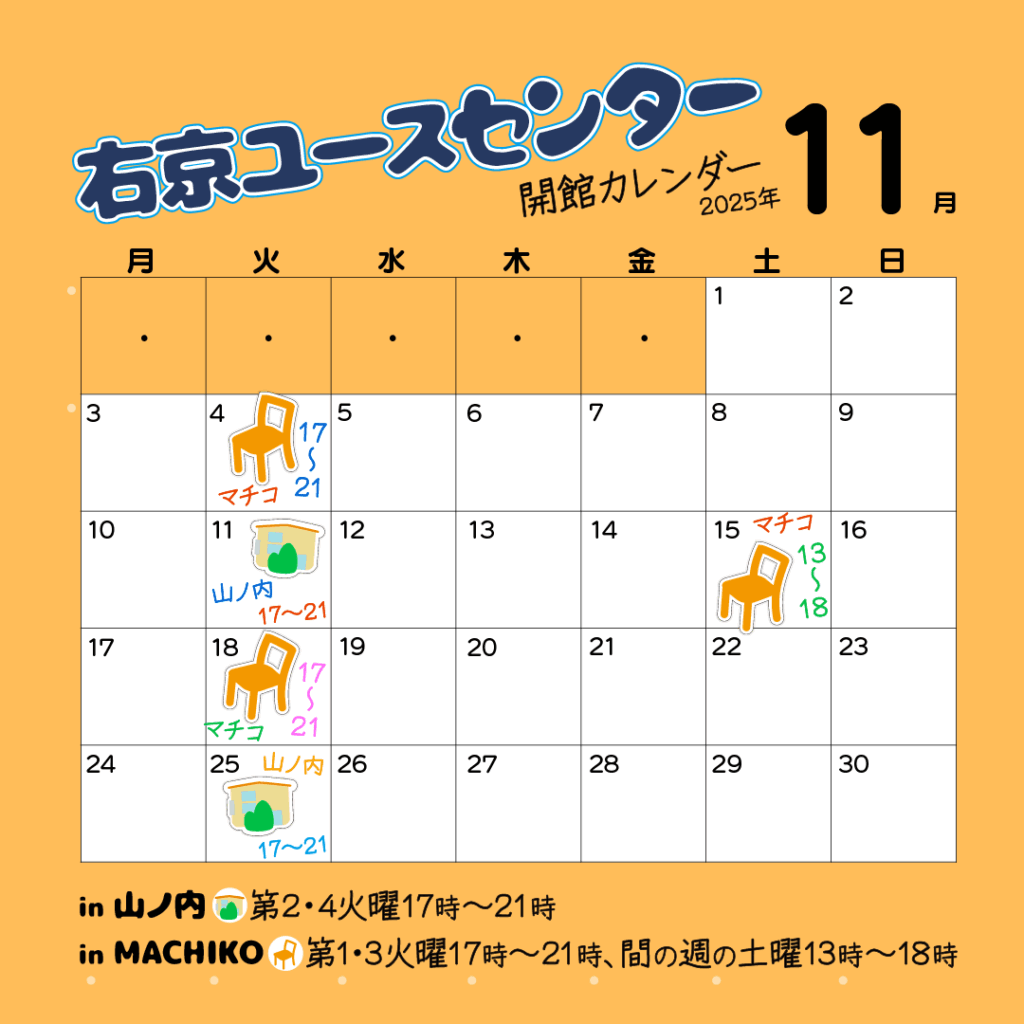 日時:第1、第3火曜日の17時から21時までと、その間の土曜日の13時から18時までオープン場所:右京区総合庁舎「サンサ右京」(右京区役所)1階の右京区民まちづくり交流拠点「MACHIKO」