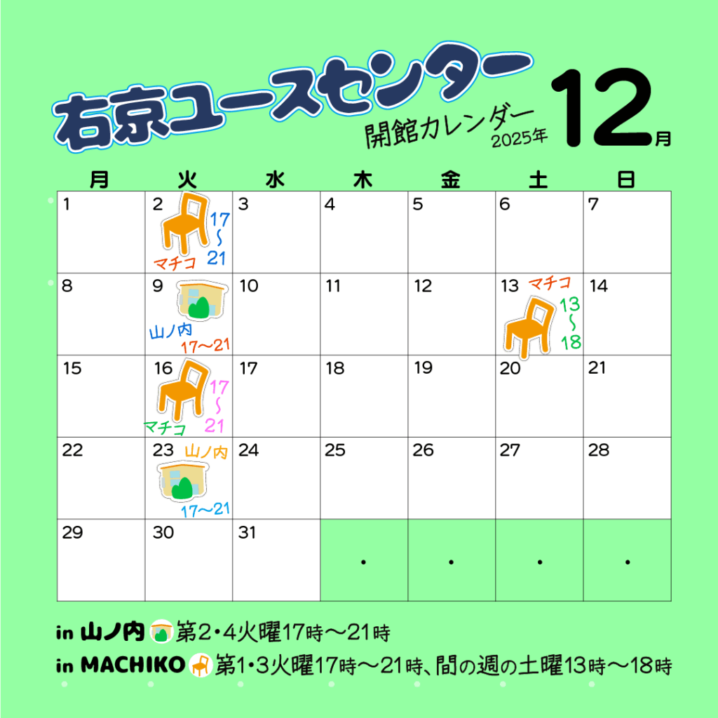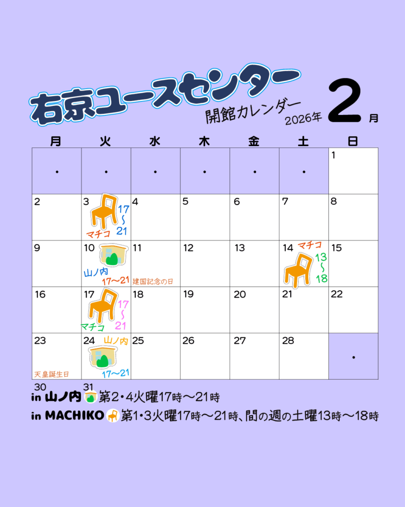 日時:第2、第4火曜日の17時から21時までオープン場所:葛野大路三条上る東側の山ノ内自治会館