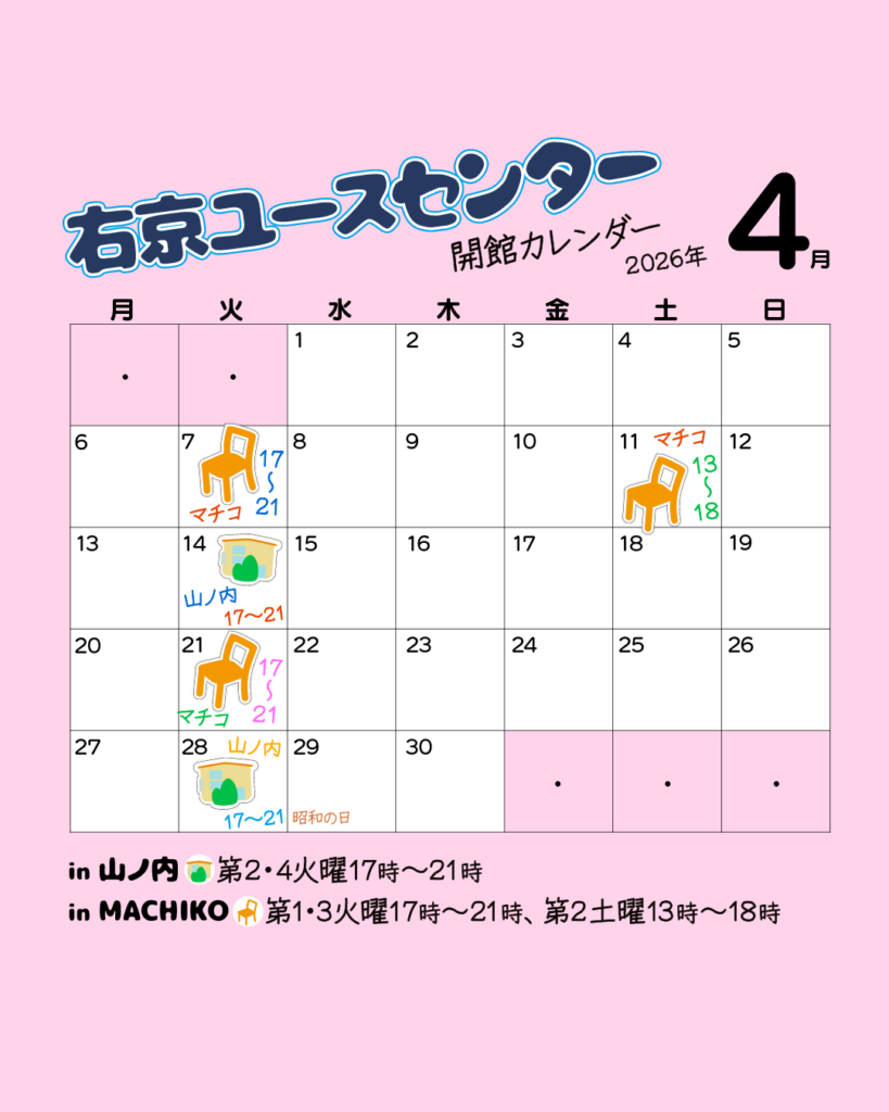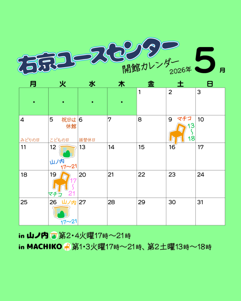 京都市右京区内にある若者のフリースペース「右京ユースセンター」のサイトです。